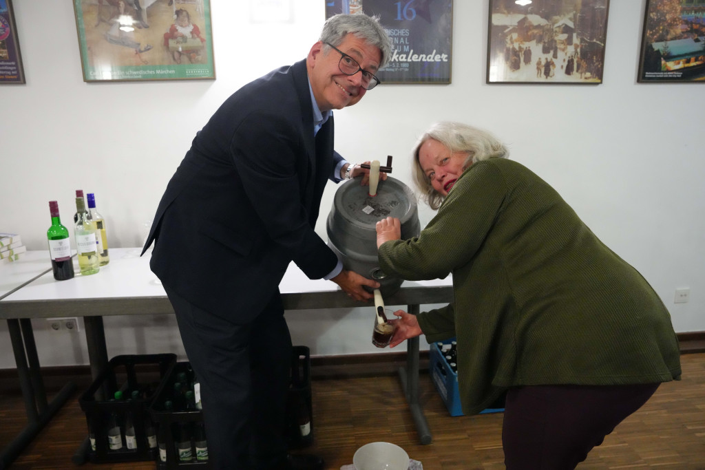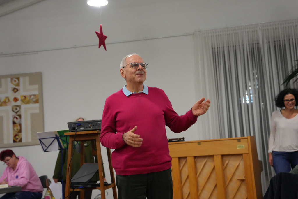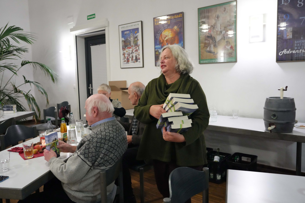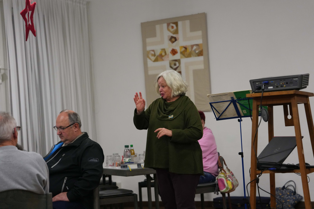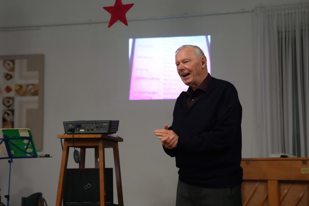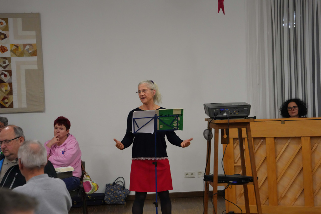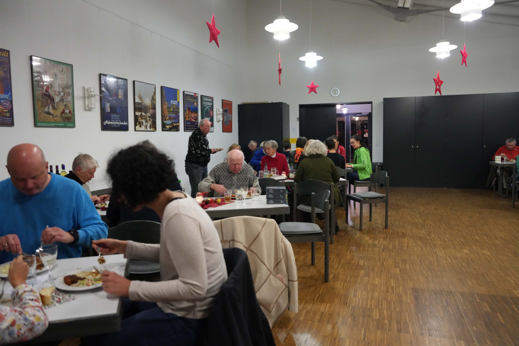 Es war ein geselliger Abend mit einem leckeren Buffet und anregenden Gesprächen. Zwischendurch gab es einen bewegenden Film- Vortrag von Herrn Fuchs zum Kirchenbau in der 60-er Jahren sowie manche launige musikalischen Beiträge.